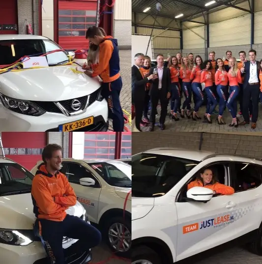 Team Justlease vertoeft momenteel nog in Nederland. De schaatsers werden afgelopen week verrast door de sponsor. Wüst & co werd verteld dat er een filmpje opgenomen moest worden, maar in werkelijkheid mochten ze de sleutels van hun nieuwe auto’s in ontvangst nemen. (Bron: Instagram)