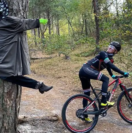 Nog meer Halloweenplaatjes! Bart Mol durfde het wel aan om een mountainbiketochtje door het bos te maken.