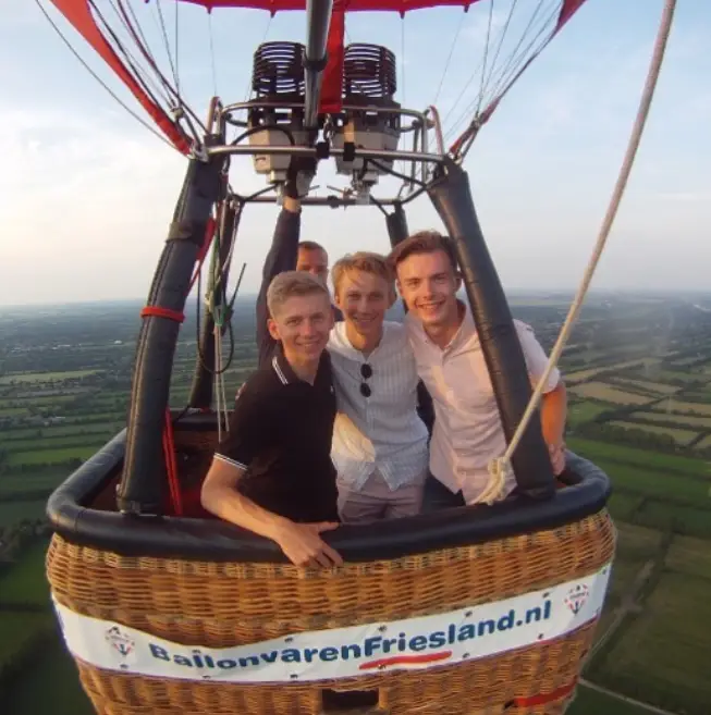 Geen WK, dan maar een tochtje met de luchtballon zouden Merijn Scheperkamp, Jordy van Workum en Harm Visser hebben gedacht.