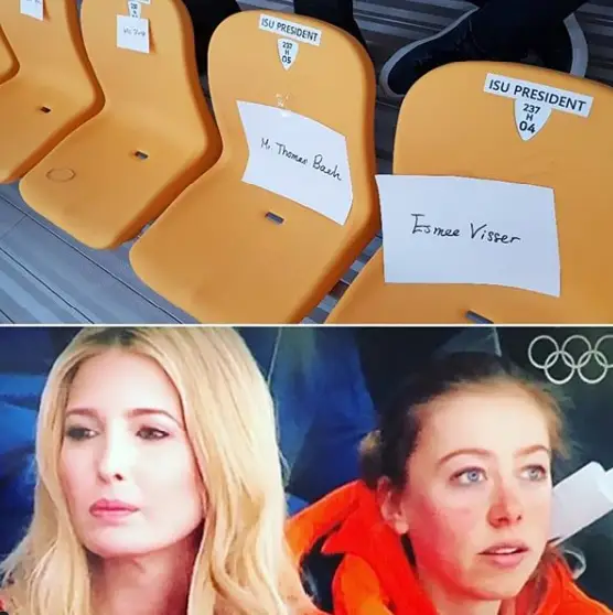 Olympisch kampioene Esmee Visser mocht in Zuid-Korea tussen de bobo's de mass start kijken en trof daar zelfs Ivanka Trump. En passant kon Visser meteen aan mevrouw Trump uitleggen hoe dat schaatsen nou in elkaar stak.