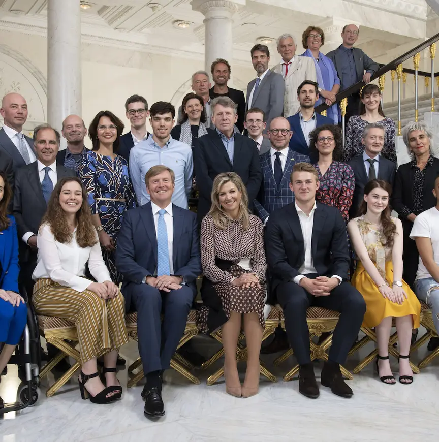 Patrick Roest en Suzanne Schulting hadden samen met 26 andere 'uitblinkers' een bijzondere lunch. Ze waren uitgenodigd op Paleis Noordeinde door koning Willem-Alexander en koningin Mรกxima.