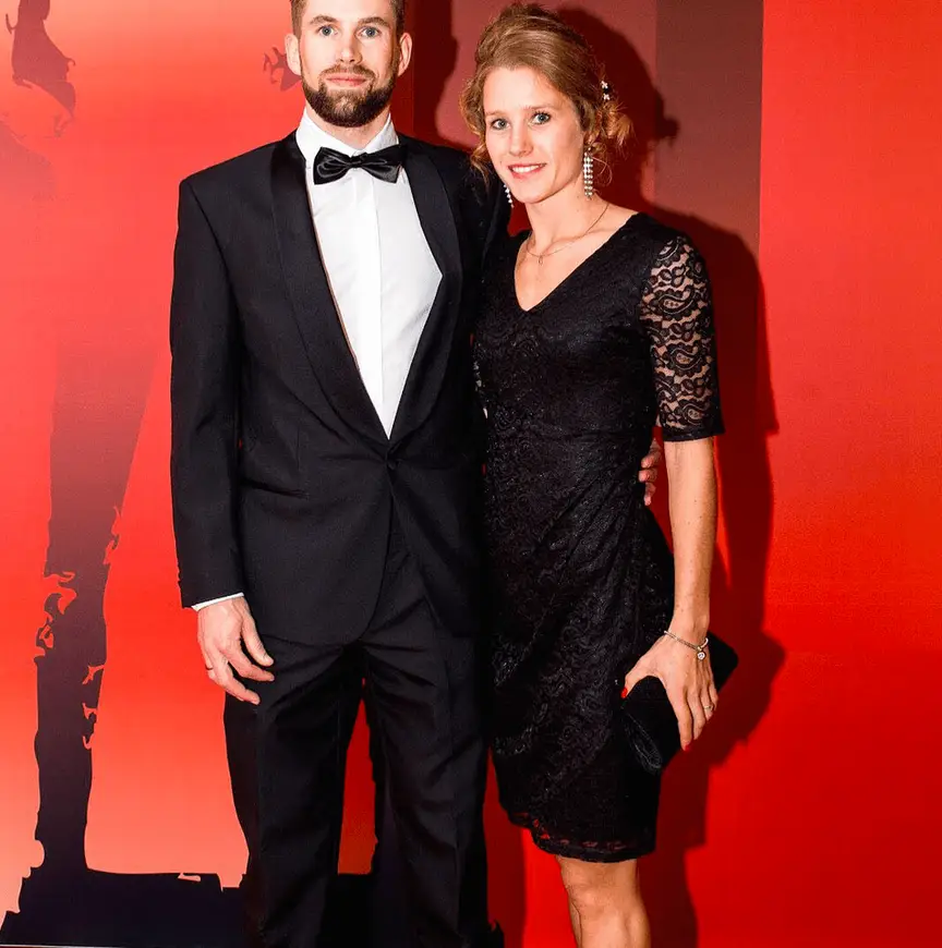 Shorttracker Daan Breeuwsma schittert met zijn vriendin, Rianne de Vries, op de rode loper tijdens het Sportgala in de RAI in Amsterdam. Breeuwsma was met de relayploeg genomineerd voor 'Sportploeg van het Jaar', maar die prijs ging op het eind van de avond naar de Oranjevrouwen. Zij werden eerder dit jaar Europees kampioen in eigen land.