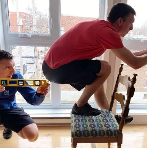 Alex Boisvert-Lacroix moet het even zonder de begeleiding van zijn coach stellen, dus controleert hij zelf maar of zijn techniek wel goed is.ย