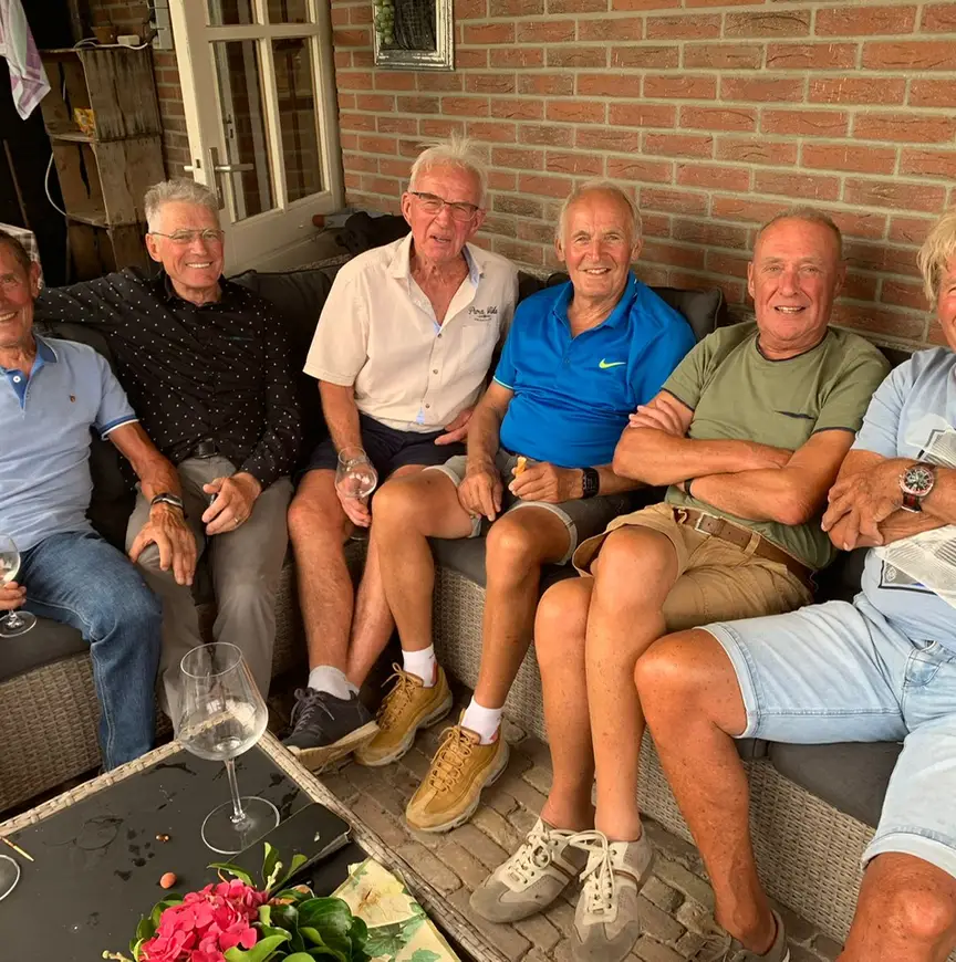 Genieten met, inderdaad, een grote G, dat is het alle jaren opnieuw. Vanaf het moment dat de eerste cracks binnendruppelen bij Piet thuis in Ingen (aan de Nederrijn), barsten de verhalen over vroeger los. Want met de racefiets erop uit, da’s leuk, maar het draait natuurlijk om de onvergetelijke verhalen over een periode die ver achter iedereen ligt. Vaak treedt Gerben Karstens, ook bekend als gewezen rittenkaper én grappenmaker in de Tour de France, op als een soort spreekstalmeester die de anekdotes met het gemak van een cabaretier uit zijn mouw schudt. Maar de notariszoon uit Leiden heeft verstek moeten laten gaan vanwege een pijnlijke ontsteking. Ook een andere trouwe klant, Rudie Liebrechts, gezegend met een fotografisch geheugen en daarom vanzelfsprekend goud waard tijdens dit soort bijeenkomsten, wordt deze keer gemist. De geboren Vlaardinger, in 1961 en ’64 derde op het WK Allround, mist het feest door ziekte.