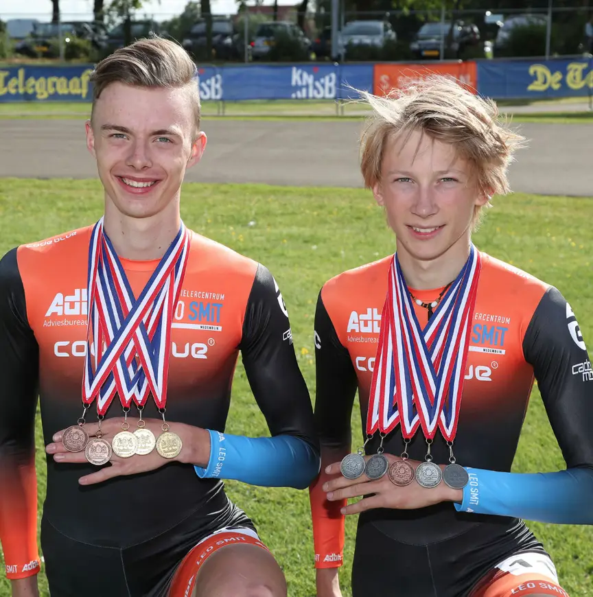 Een ding is zeker: de mannen zijn in topvorm. In juni mocht Van Workum in voorbereiding op het EK tijdens de baancompetitie in Heerde op de afvalkoers zelfs van start tussen de senioren. Hij reed daar op spectaculaire wijze naar het zilver en gaf zijn oudere collega's het nakijken. “Dat was super cool en geeft je de grootste kick. Vroeger keek in op naar die grote jongens en dacht ik; wow, daar wil ik ooit tussen rijden en nu is het ineens zover."