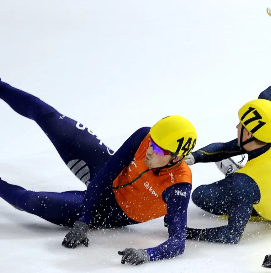 Van der Wart kwam zaterdag in de tweede voorronde van de 500 meter in de eerste bocht in botsing met de Oekraïner Serhiy Lifyrenko en gleed ongelukkig de kussens in.