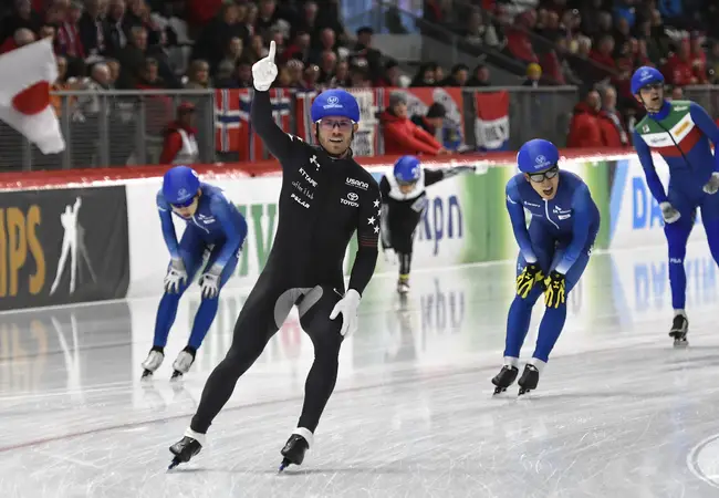 Bij de mannen greep Joey Mantia de gouden plak. De Amerikaan profiteerde van de Zuid-Koreanen, die met elkaar in gevecht waren. Cheon-ho Um pakte achter Mantia het zilver en Jae-won Chung veroverde het brons. Chris Huizinga en Douwe de Vries vertolkten een bijrol.
