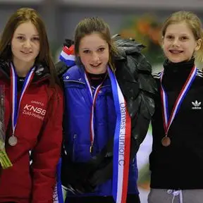 Het podium bij de meisjes Junioren-C: vlnr Sara Rog, Suzanne Schulting en Aafke Soet
