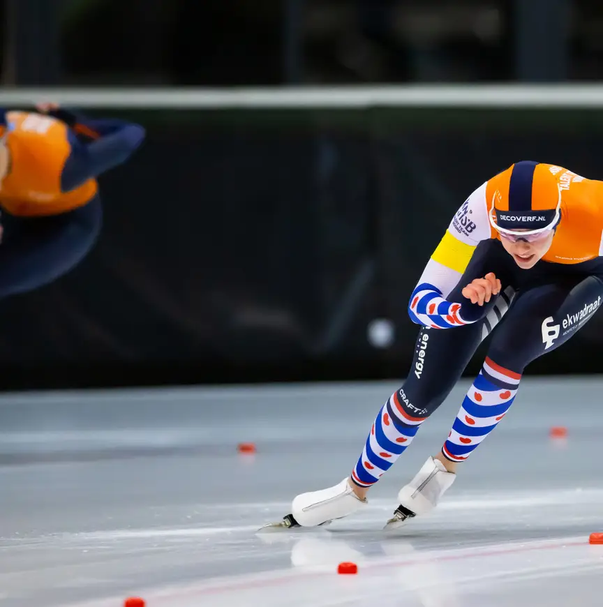 Jildou Hoekstra reed een topseizoen vorig jaar, de ranke Friezin die vandaag vierde werd in het eindklassement van het NK sprint in Utrecht bij de junioren A. Een toptijd op het WCKT in oktober, tussen kanonnen als Jutta Leerdam en Femke Kok, leek erop te wijzen dat dit seizoen veel zou brengen, maar het liep anders voor Jildou. "De hele zomer had ik al last van m’n rug. Het was met net hoe mijn rug op was, hoe ik presteerde. Als ik er meer last van had, dan lukte het niet, had ik er wat minder last van, dan lukte het wel. Het werd daarom wel een heel wisselvallig seizoen, omdat ik de planning niet kon opbouwen."