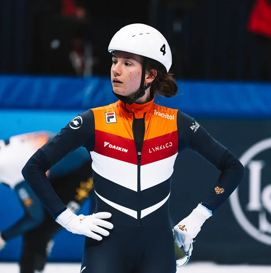 Na een half nachtje slapen, en een beetje proberen het tijdsverschil met Nederland te negeren, stond de 22-jarige Poutsma vrijdagmiddag een minuut of vijftien op het ijs van de Maurice Richard Arena in Montréal. Dag 1 van de WK was net afgesloten, maar landen en rijders die nog wat trainingsrondjes konden gebruiken voor de hoofdfase van het toernooi, werd door de organisatie een kwartiertje ijstijd gegund.