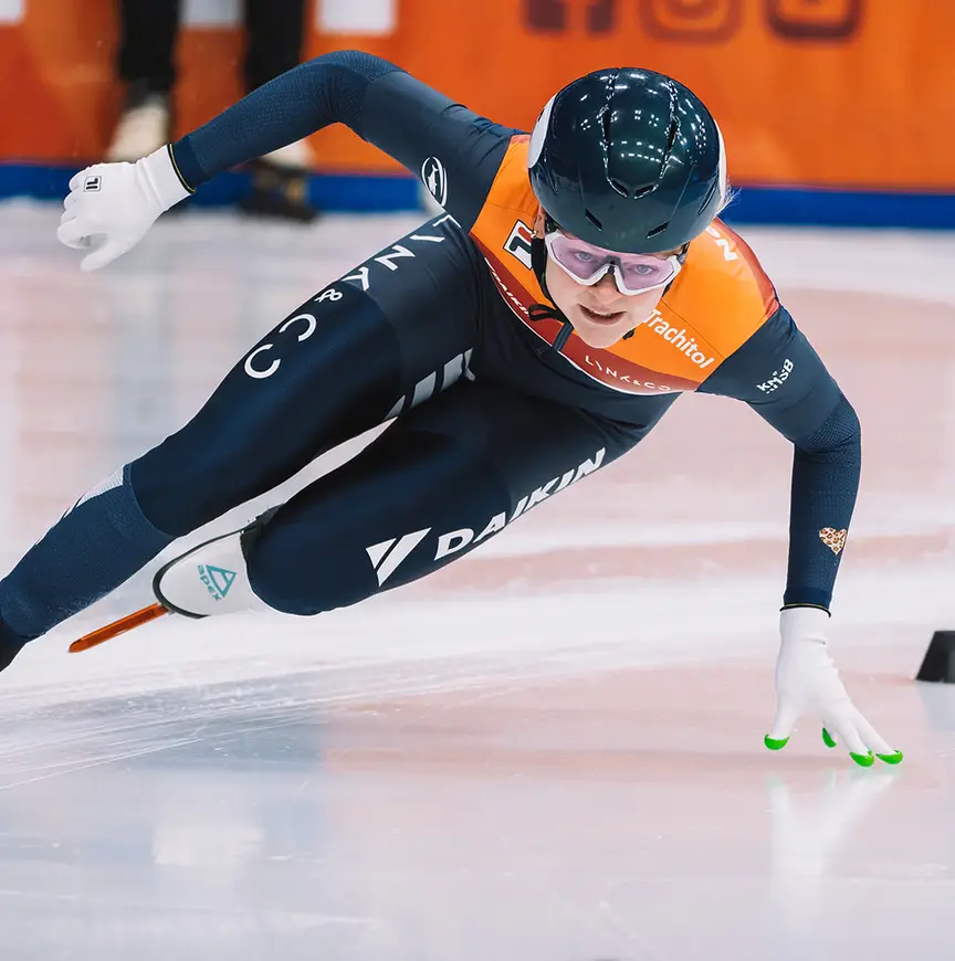 Zusje Michelle Velzeboer (18) is ook apetrots: “Ik vind het superleuk om naar haar te kijken. Ze doet het hartstikke goed. Samen met mijn ouders heb ik dit weekend voor de livestream gezeten. Het motiveert mij enorm om daar uiteindelijk ook te staan.” (Michelle doet van 11 tot en met 21 december mee aan de Winter University Games in het Zwitserse Luzern om zelf ook te strijden voor het mondiale shorttrackeremetaal red.)