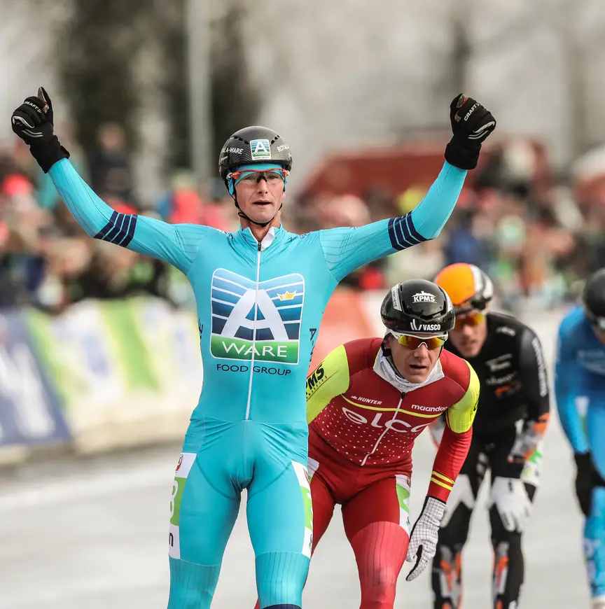 Op de ovaal van Noordlaren ging in de aantrekkelijke koers een groepje van negen man met succes in de aanval. Zij dubbelden het peloton, en daarmee was eigenlijk wel duidelijk dat de beslissende slag gevallen was. Op het zware ijs een ronde achterstand goedmaken, dat bleek een te lastige opgave. ’’Het ijs is echt moeilijk’’, zag ook Jillert Anema. ’’Er gaat niets vanzelf, je moet voor elke slag werken.’’