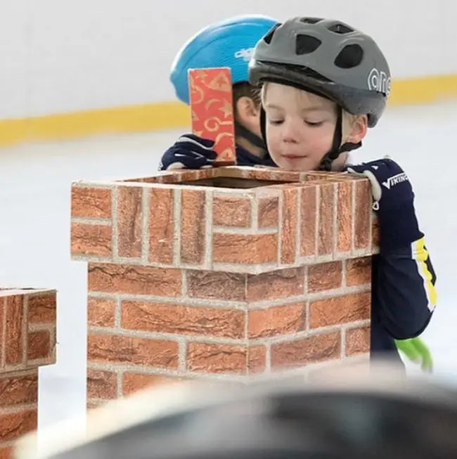 Een schoorsteen op het ijs?! Bij kunstschaatsvereniging Rijnland hadden de Sint en zijn Pieten attributen meegenomen voor tijdens de training.