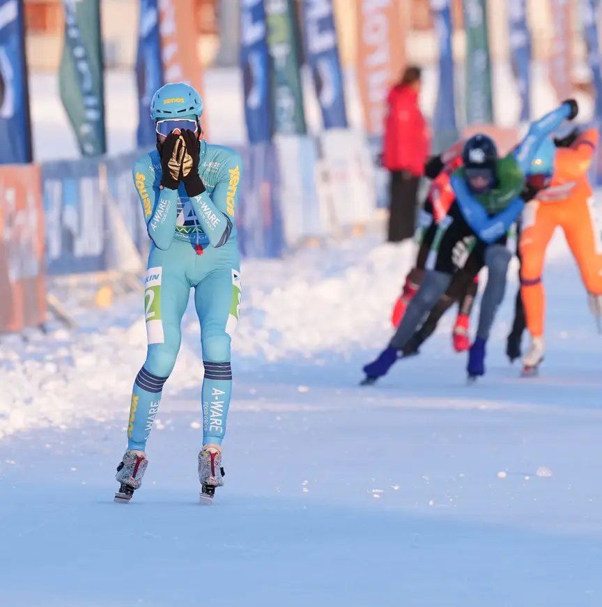“Van tevoren dacht ik dat het met min drie graden en een zonnetje een makkelijke wedstrijd zou worden, maar het was een pittige race. Ik heb niet lekker geschaatst. Geen moment voelde ik dat mijn slagen raak waren. Blijkbaar kan ik dan alsnog als eerste eindigen.” En daarmee bezorgde de Gouwenaar zijn team de eerste natuurijsoverwinning van deze winter. “Heel lekker om de ploeg van de nul af te halen. Op de Weissensee merkte ik al dat we een sterk collectief hebben.”