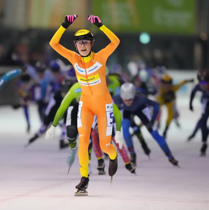 Schilder schaatste de gehele wedstrijd – twee keer onderbroken door valpartijen – als een strenge politieagente rond. Het kopwerk liet ze aan anderen over, maar voortdurend zorgde ze ervoor dat ze bij de eerste tien, vijftien vrouwen van het peloton zat om desgewenst op alle gevaarlijke ontsnappingen te kunnen reageren. Die kwamen er evenwel niet, althans, geen georganiseerde pogingen waarmee ze op de proef werd gesteld. “Ik rijd een beetje zoals ik het in het inlineskaten gewend ben. Goed van voren zitten en reageren op momenten dat het moet”, zo zei ze na afloop lachend. Als leidster in het algemeen klassement verstevigde ze uiteraard haar eerste positie. Opvallend detail: Schilder kwam in de Marathon Cup zes keer op het ijs en in alle gevallen stond haar naam bij de beste zes deelneemsters.