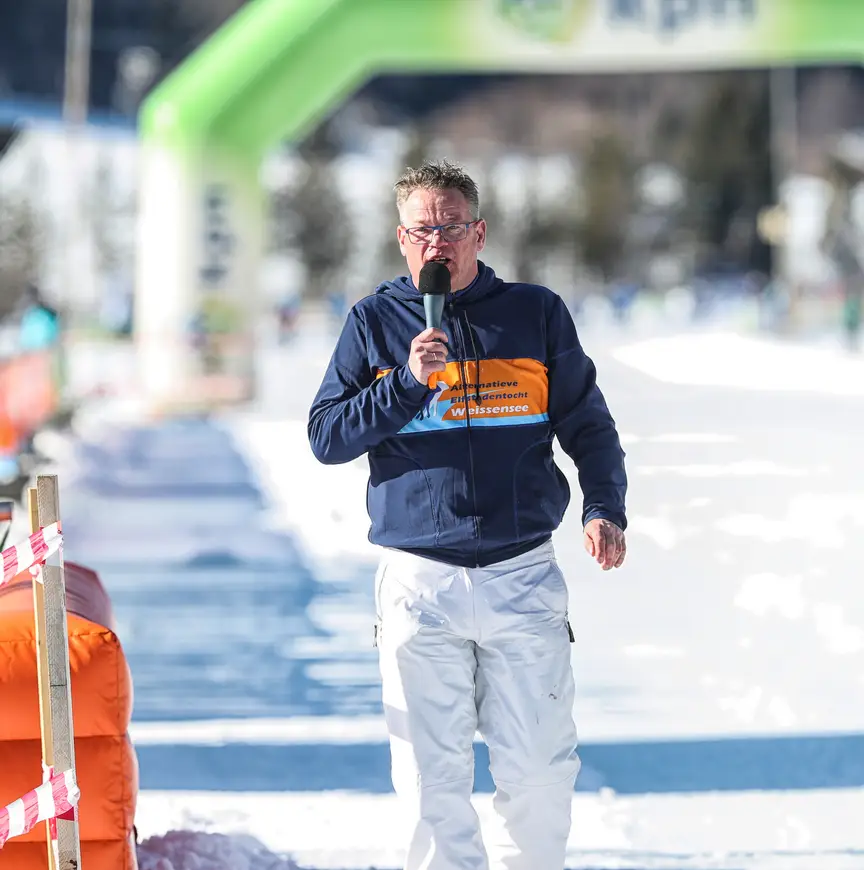 "Ik zou blij zijn als het weer kan", zegt hij, doelend op speakeren langs de baan. Het liefst met beide voeten op een dikke laag natuurijs. "Ik baal ervan dat de Weissensee al niet doorgaat. Ik baal ervan dat bij natuurijs de Elfstedentocht en de Overijsselse Merentocht niet doorgaan."