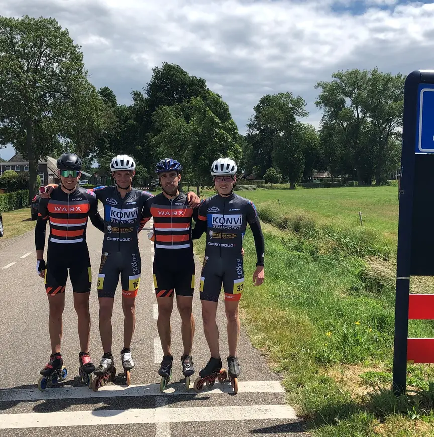 Als er toch binnenkort geen wedstrijden zijn verzinnen we zelf maar een uitdaging. Dat moeten Kevin van der Horst, Gerwin Smit en de broers Jurrian en Ronald Haasjes uit Staphorst hebben gedacht voordat ze zaterdagochtend om zeven uur begonnen aan hun onderneming van maar liefst 200 kilometer. Zij legden een monsterskeelertocht af in het kader van de 6 Inline Challenge, een initiatief van 24KiKa om te skaten tegen kanker.