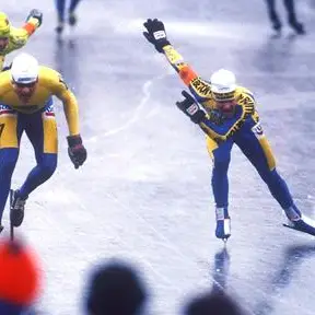 Angenent verslaat tijdens de laatste Elfstedentocht, in 1997, Hulzebosch in de eindsprint