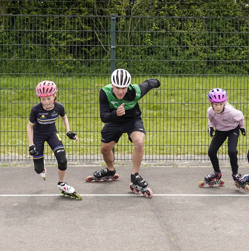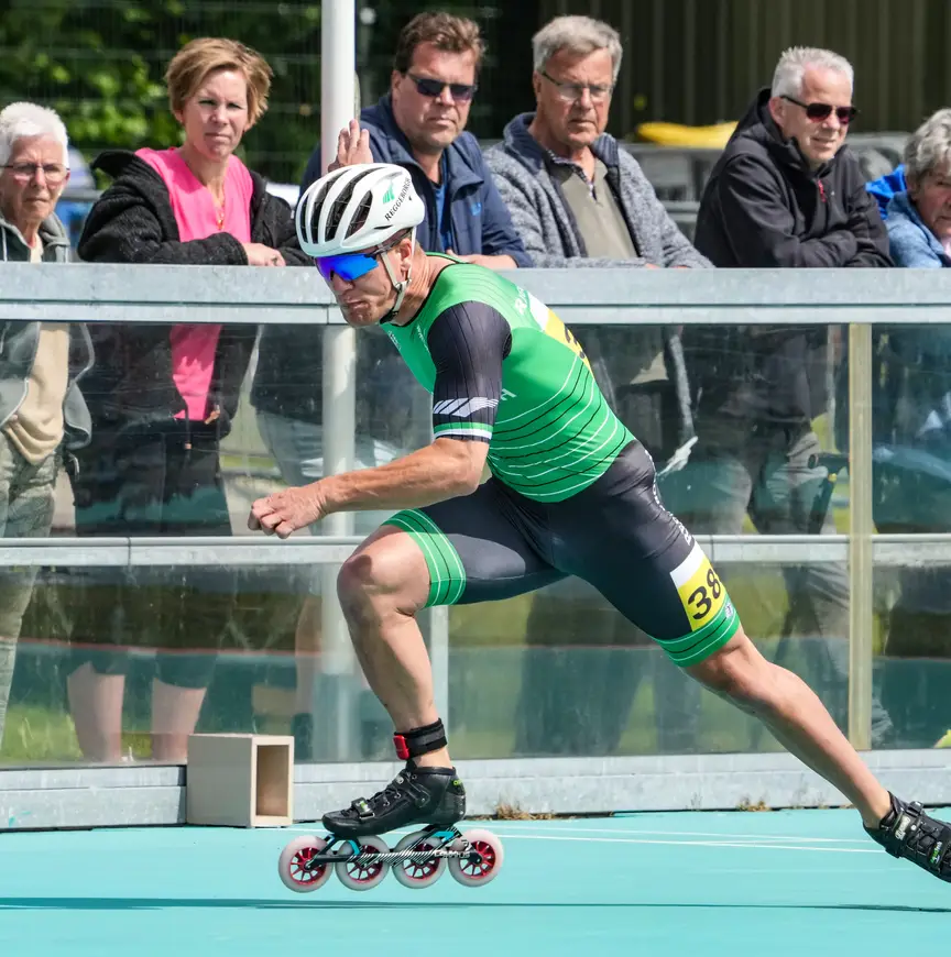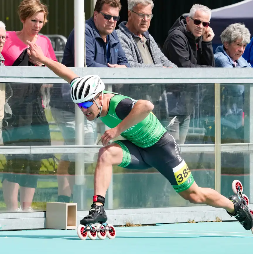 De focus om straks betere tijden te rijden ligt op het tweede deel van zijn vijfhonderd meter. “Ik start goed, de eerste driehonderd zijn prima, maar over een volle ronde bekeken schiet ik veel tekort. Dat moet anders. Het draait om inhoud en techniek. Het is niet dat ik na driehonderd meter vergeet te letten op mijn techniek, maar die verzuring die dan toeslaat…na pak ’m beet dertig seconden. Die is verschrikkelijk. Ik moet leren te gaan ‘zitten’ in de slotfase van de race, de hoeken houden. Ik step als de vermoeidheid opkomt, al gauw naar achteren. Kortom, het moet allemaal beter. De vijfhonderd meter lijkt een simpele afstand, omdat-ie zo kort is. Soms lijkt het voor mij een legpuzzel van duizend stukjes, waarbij elk foutje funest is voor je eindtijd”, aldus Westenbroek die vorige winter zes keer op een officiële vijfhonderd meter onder de 35 seconden uitkwam.