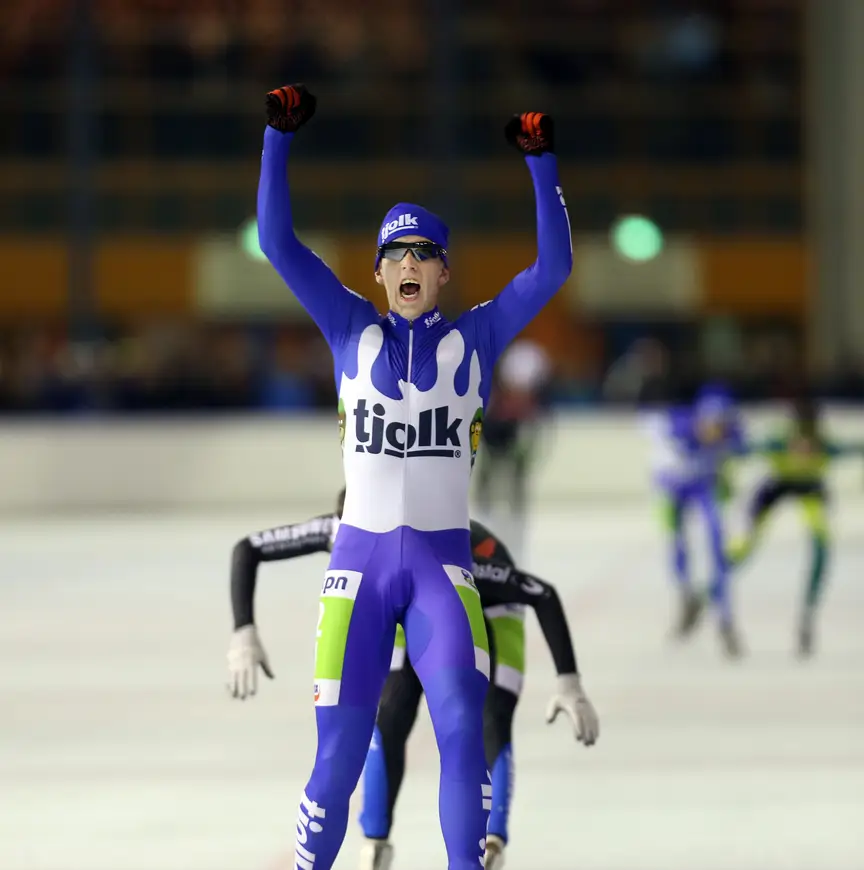 Een deel van die snelste mannen maakte de overwinning van Hoolwerf overigens niet mee. Arjan Stroetinga, Jorrit Bergsma en Ingmar Berga trainen op Tenerife, Jouke Hoogeveen en Erik Jan Kooiman vlogen uit voor de World Cup in Seoul. Zij en Anema zullen ongetwijfeld met genoegen het nieuws hebben aangehoord.