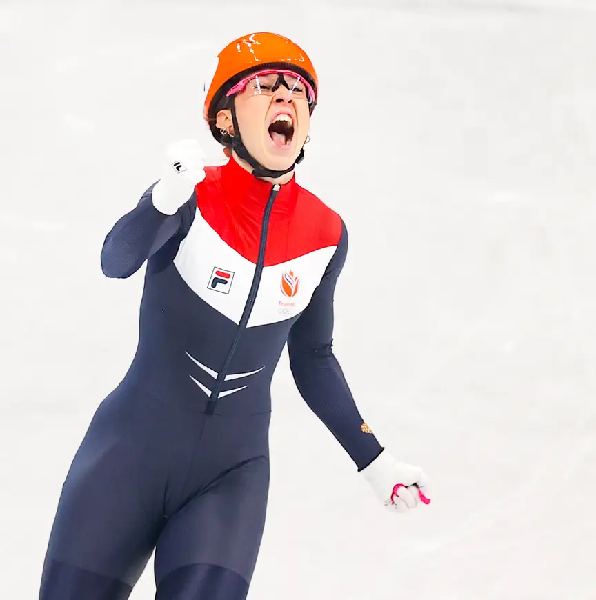 Dat was te zien aan ‘haar’ 1000 meter die nu nóg meer van Schulting is, door het verbeteren van het wereldrecord. “Dat is wel heel nice. Vorig jaar had ik na de WK op de achterkant van mijn schoen 1.26.5 gezet, en toen kwam ik er in het toernooi heel dichtbij. Vlak voor de reis naar Beijing had ik nieuwe schoenen laten maken, met weer die tijd erop. Ik droeg ze voor de eerste keer en na de kwartfinale keek ik op het scorebord waar 1.26,52 stond. Holy shit, dacht ik, dit is wel echt ziek, want het is ook gewoon een dikke 5, letterlijk dezelfde tijd die ik op mijn schoenen heb. Heel bizar. Wat was ik blij, maar dacht ook: dit is heel hard en ik moet het wel zien vast te houden voor de halve finale en de finale.”
