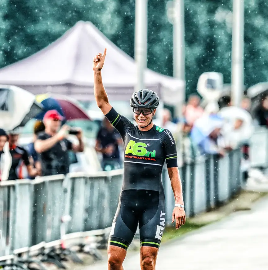 Ze kreeg aanvankelijk niet veel ruimte en moest rondenlang 'volle bak' doorrijden om voorop te blijven. "Je kon gewoon geen groot gat slaan op dit natte parcours. Het enige waar je het verschil kon maken, was bij de bochtjes. Op het rechte stuk probeerde ik een beetje uit te rusten, zodat ik bij de vier bochten kon uitversnellen. In het begin pakte ik misschien één seconde per twee rondjes en pas toen de andere vier het opgaven, zag ik mijn voorsprong steeds groter worden." Bianca Roosenboom won de sprint om plek twee, vlak voor Beau Wagemaker die derde werd.