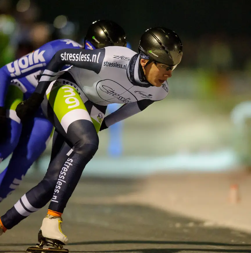 Het viel hem mee hoeveel het natuurijs afweek van het kunstijs. "De eerste ronde dacht ik: wat is dit, maar daarna ging het eigenlijk al snel goed." Toch verslikte hij zich juist in de op een na laatste bocht nog wel even en moest hij zijn tweede plekje in het peloton opgeven. De derde plek was vervolgens het hoogst haalbare.