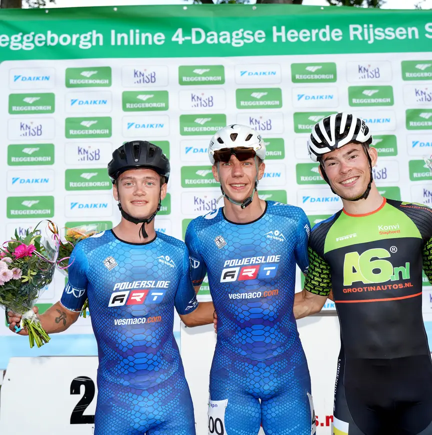 Daar had de import-Heerdenaar van Team Reggeborgh volledig gelijk in. Net zoals met de constatering dat Swings een niveau etaleert dat zelden is gezien in de skeelerscene van tegenwoordig. Het gegeven dat de Vlaming uit de buurt van Leuven ook op dag twee na een halve marathon als winnaar was afgevlagd, parkeerde hij gemakshalve in het statistiekenboek. Kwestie van niets aan te doen. “Laten we blij zijn dat zo’n man erbij is deze week, want een hoger niveau krijg je niet. Hij wint, ja, dat klopt. Daar valt niets tegen te doen. Moeten we dan met het hele peloton tegen hem gaan rijden? Kansloos, zeg ik je. Je kunt niet afspreken met elkaar dat je dat doet, omdat iedereen z’n eigen belangen heeft en graag zijn eigen mannetje vooruit wil sturen. Ik heb liever dat we het aanpakken zoals we het woensdag en vandaag hebben geprobeerd.”