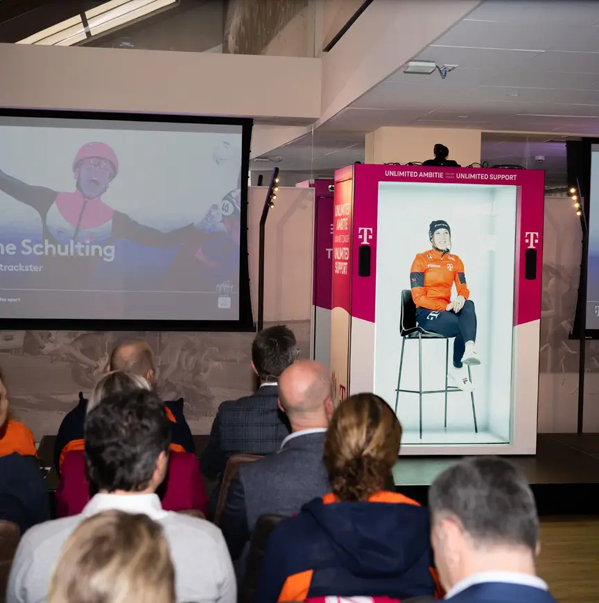 De sponsorovereenkomst werd woensdag wereldkundig gemaakt in het Olympisch Stadion in Amsterdam. Shorttrackster Suzanne Schulting gaf via de moderne technieken een toelichting. De drievoudig olympisch kampioene stapte in Dordrecht, waar komend weekeinde wereldbekerwedstrijden worden gehouden, in een holobox. Haar hologram - een digitale projectie - werd vervolgens zichtbaar in het Olympisch Stadion. Ook Pieter van den Hoogenband en Esther Vergeer, chef de mission van respectievelijk de olympische en paralympische ploeg, hadden op die manier een aandeel in de presentatie.