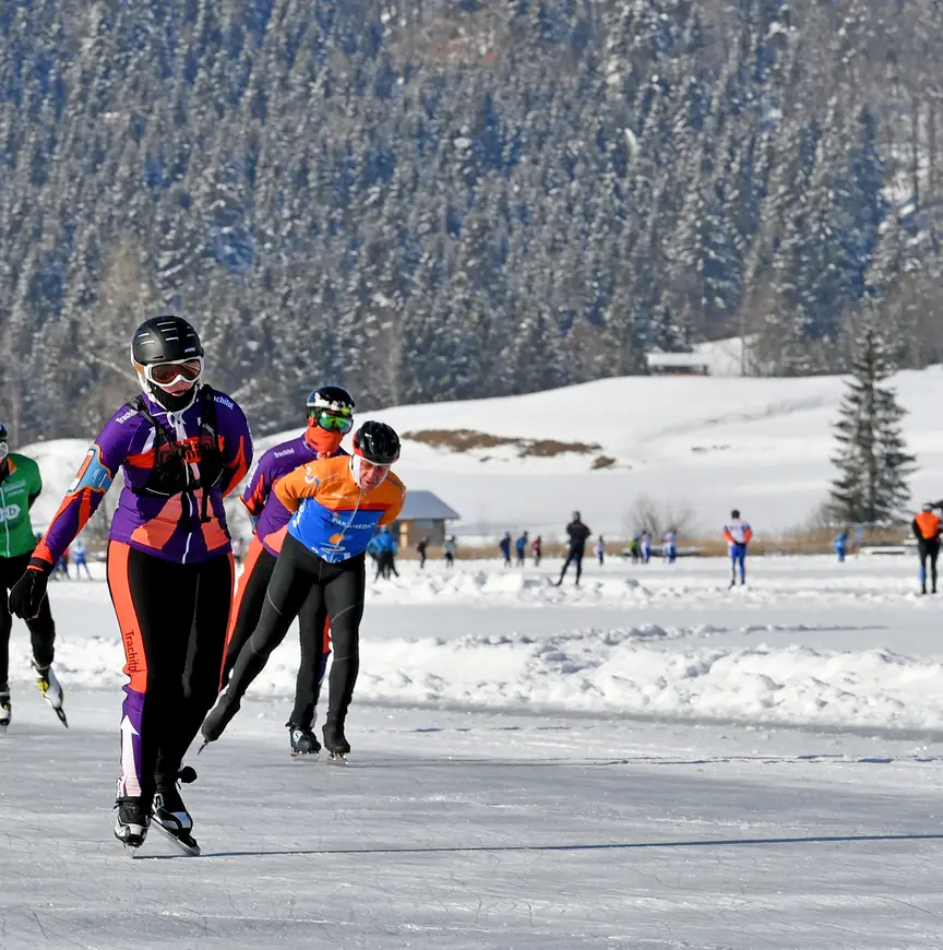 "Nu zit ik dus te supporteren. Heerlijk in het zonnetje", klinkt het tevreden. "We hebben gisteren gekeken bij de Aart Koopmans Memorial. Dat is het leuke hiervan: je kunt zelf schaatsen en de toppers aan het werk zien en je verbazen over hoe hard zij over die scheuren rijden." Van Muiswinkel is voor de vijfde maal op de Weissensee, maar zijn laatste bezoek is alweer zes jaar geleden. "Het werd wel weer eens tijd om hier te zijn. Ik wil graag een keer met mijn zoon schaatsen, hij is nu 13 jaar oud. Dit was een mooie generale repetitie voor volgend jaar."