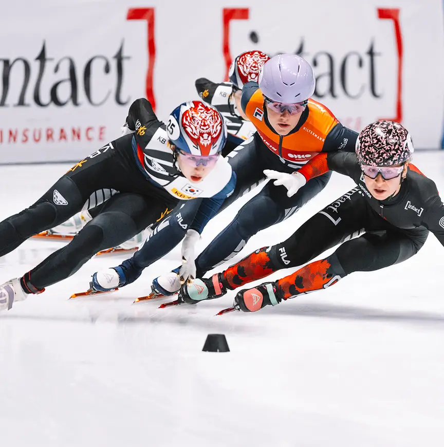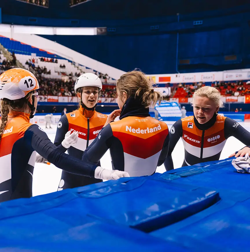 Michelle Velzeboer (foto boven) laveerde op knappe wijze naar de eindstrijd van de 1000 meter bij de vrouwen, haar eerste op dit nummer. In het seizoen 2022-’23 meldde ze zich als nieuwkomer al twee keer voor de medaillestrijd, en in Almaty had ze succes (zilver). Over haar kansen zondag had ze van tevoren geen bepaalde verwachtingen. “Ik was al heel blij met het bereiken van de finale. Ik ging van start met een goed gevoel, om te kijken wat ik zou kunnen.” Ze werd, omver gekegeld door de Koreaanse tegenstandster, Soyoun Lee, uiteindelijk vierde achter twee Koreaansen en een Canadese. “Ik ben tevreden hoe ik heb geracet, zeker in de halve finale waar ik het bijna zonder een advancement (toegevoegd aan volgende ronde, red.) had gered”, vertelde de jongere zus van Xandra.