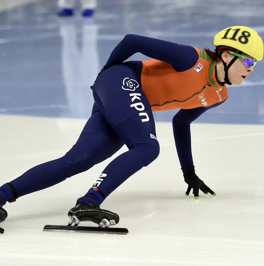 Dat ging Ter Mors in eerste instantie prima af, maar toen de Française Veronique Pierron en de Britse Charlotte Gilmartin gingen aandringen ging het alsnog mis. Ter Mors kon de bocht niet meer houden. “Je kan gewoon niet sturen. Kansloos”, stelt Ter Mors, die een hap ter grootte van vijf centimeter uit het voorste deel van haar schaats bleek te missen.