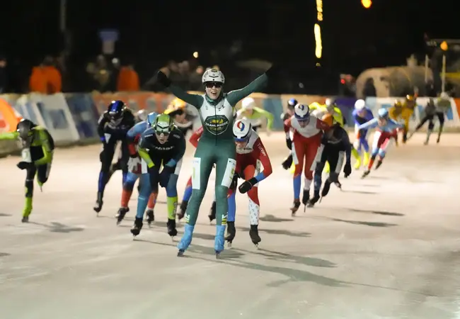 Bart Hoolwerf had zich geen mooiere tweede kerstdag kunnen wensen. Eerst reed hij een dik persoonlijk record op de 5.000 meter tijdens het OKT (6.24,34) en vervolgens kon niemand tippen aan zijn eindsprint in Noordlaren. Hij liet de rest van het peloton met een ruime voorsprong achter zich.