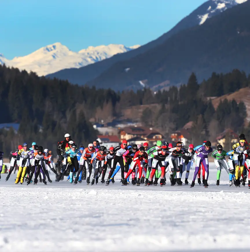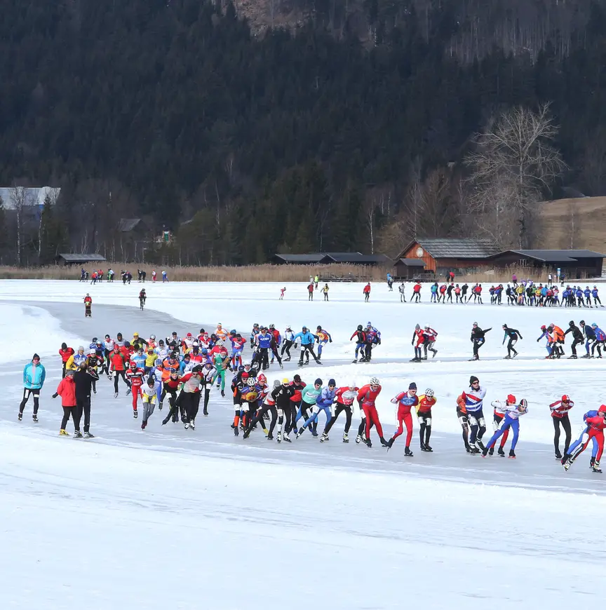 Zo'n vierduizend Nederlandse schaatsers met aanhang bevolkten eind januari de Weissensee. Het professionele marathoncircuit was aanwezig voor een reeks wedstrijden, de toerschaatsers voor een tocht over tweehonderd kilometer.
