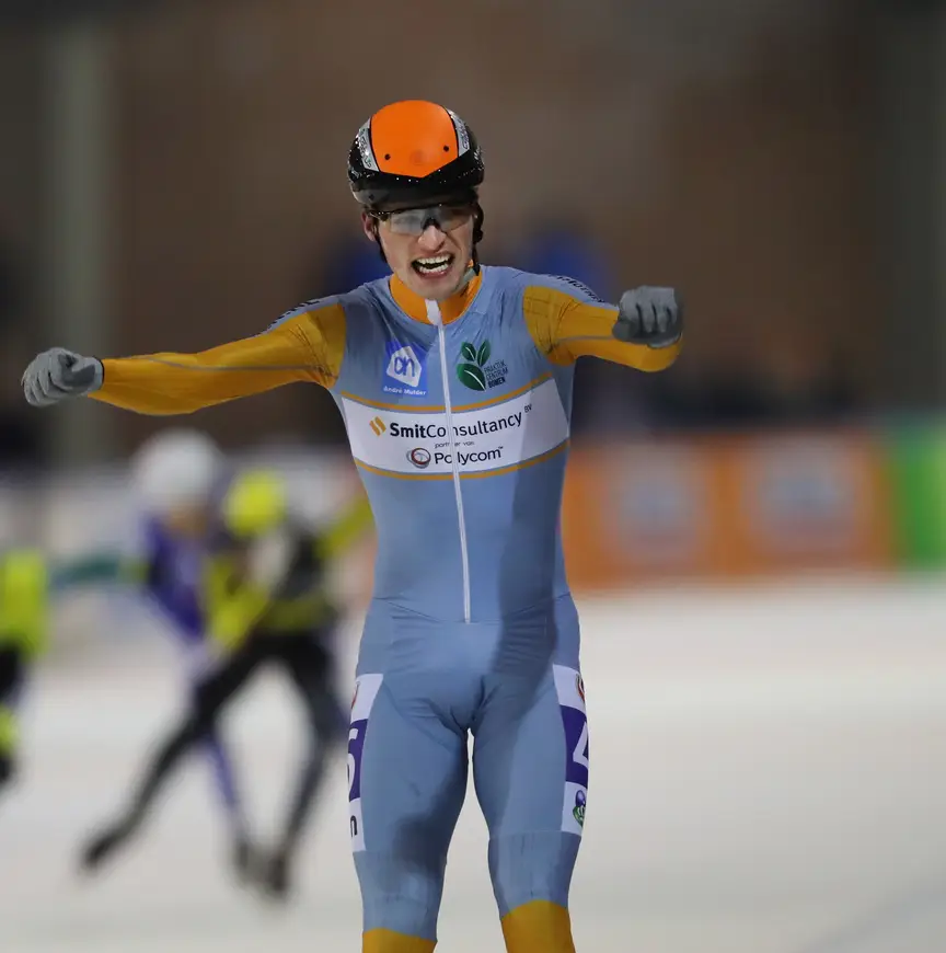 Het was in De Scheg de laatste doorstroomwedstrijd, waardoor er geen punten te verdienen waren voor het klassement. Kevin Hoekstra neemt daardoor het oranje leiderspak mee naar de finale in Amsterdam.