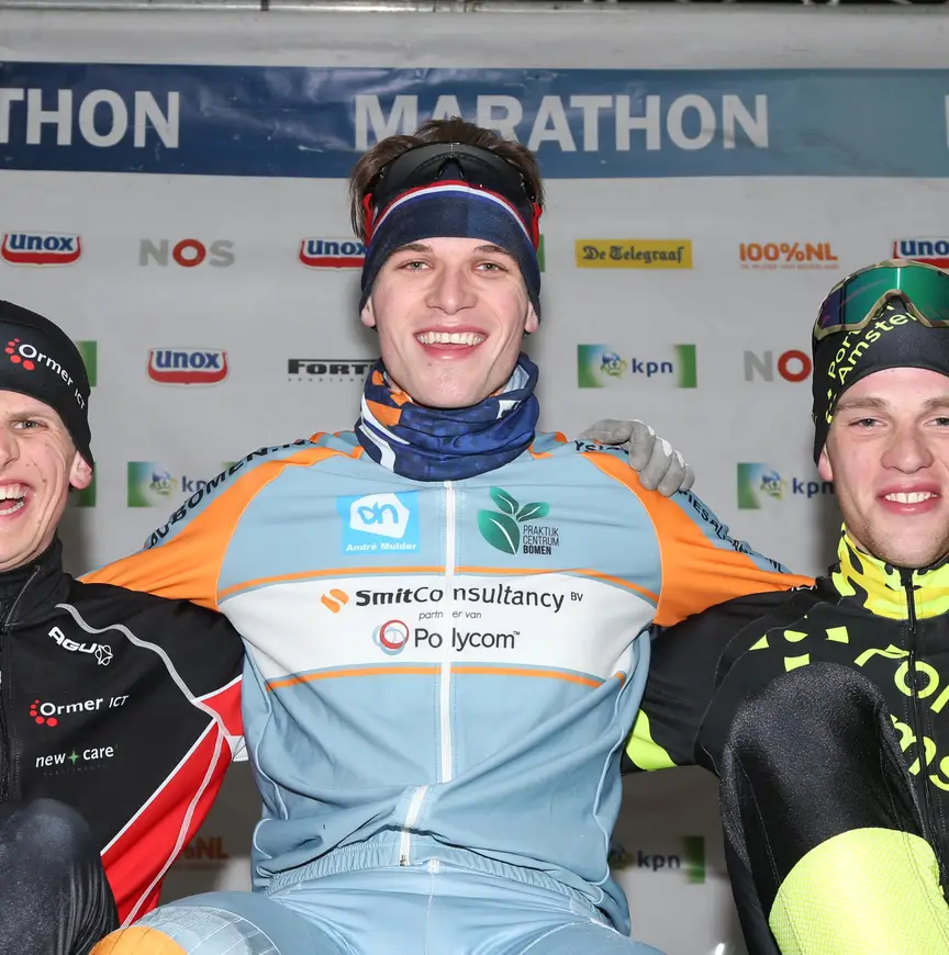 Lekker liep het ook bij Thomas Geerdinck. Van origine langebaanschaatser bij het team Justlease.nl, maar ook een enthousiast deelnemer aan de marathons. "In principe als training, maar als ik eenmaal op het ijs sta, wil ik winnen ook", stelde de 22-jarige schaatser.