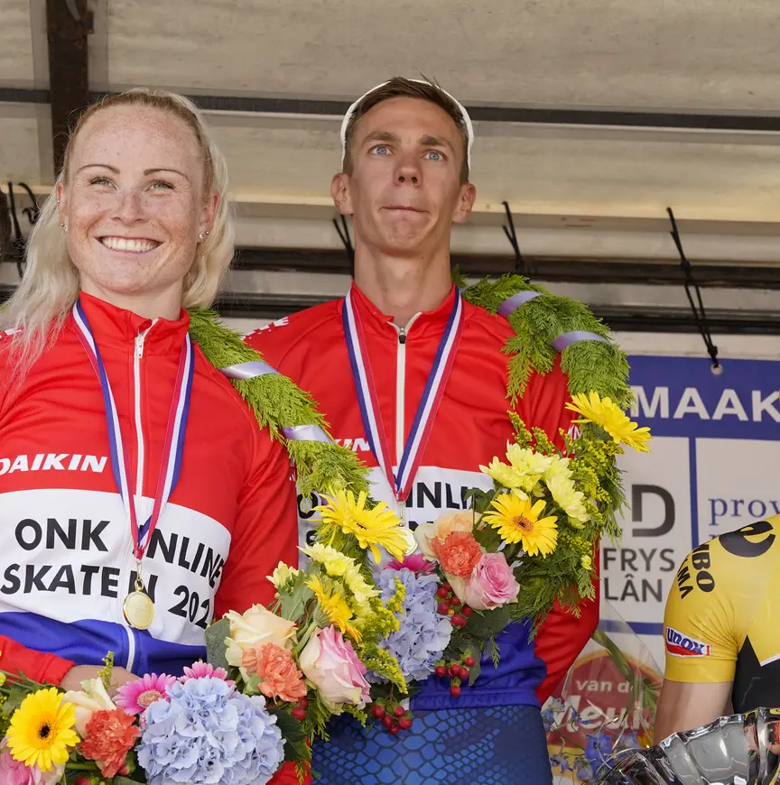 Alle ogen waren gevestigd op de Hallumse. “Heel veel mensen dachten van tevoren: ze doet het wel. Maar je moet het dan nog even zien te maken. Ik wist dat ik goede kaarten had. En het is ook lekker als er druk op staat. Ik vond het wel jammer dat er zo weinig rijdsters waren, ik snap niet waar de rest is. Je wil het liefst net zo’n peloton als bij de mannen.”