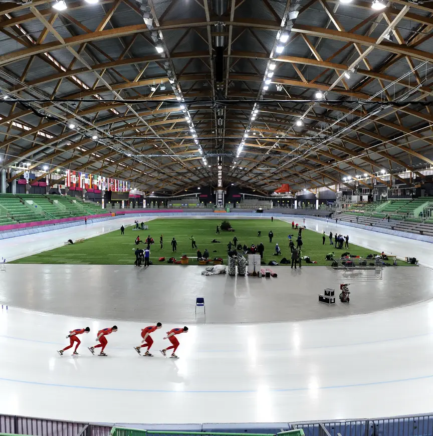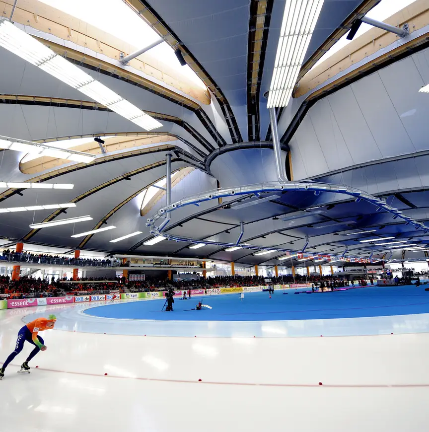 Het Sportforum Hohenschönhausen was de allereerste overdekte 400-meterkunstijsbaan van de wereld. Kort hierna volgden Thialf en de Olympic Oval. In 1997 reed Ids Postma daar als eerste schaatser een wereldrecord. Op de 1500 meter verbrak hij de grens van 1.50,00 in een tijd van 1.49,81.