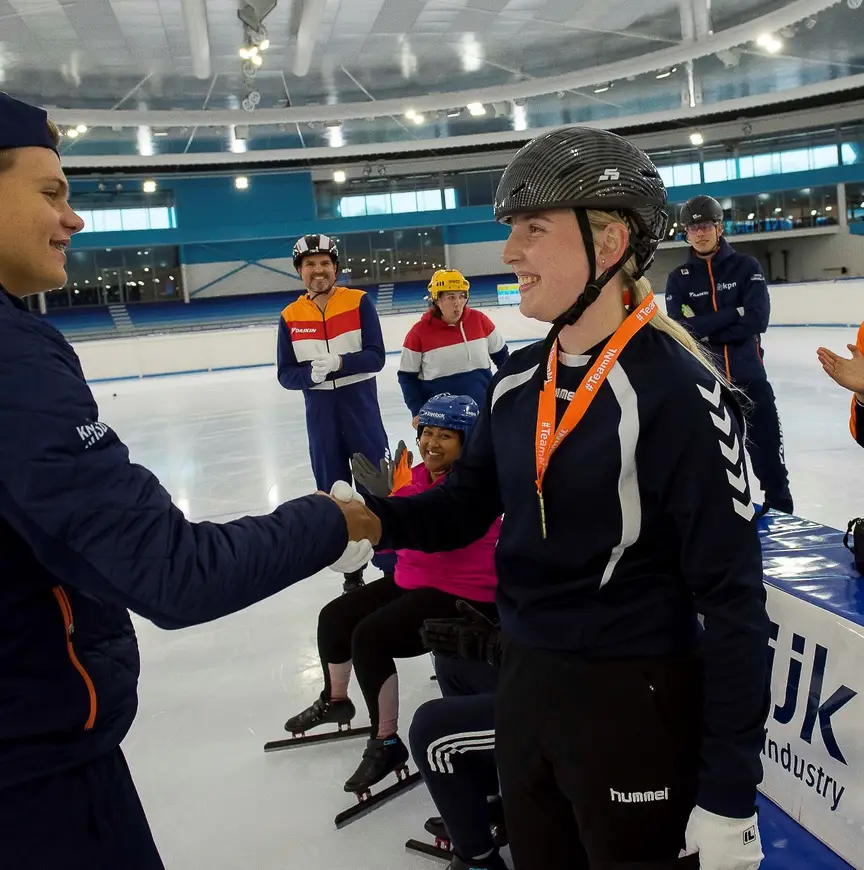 Toch was er nog een horde te nemen voordat de jonge shorttracker echt in de wereldbekerploeg kon worden opgenomen. "Als je voor het eerst een World Cup rijdt, moet je ook een speech geven", legt Van 't Wout uit. "Dat is een echte icebreaker. Ik houd ervan om mensen aan het lachen te maken en daar kon ik mijn kans pakken om te laten zien hoe ik ben. Ik kon mooi vertellen over mijn jeugd in Canada: grappig, maar serieus als het moet, super gefocust op het schaatsen en verslaafd aan de sport."