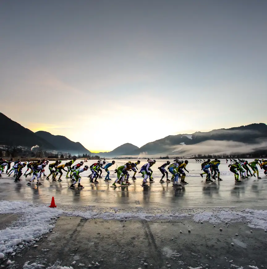 Wat is er aan de hand op de Weissensee? Eigenlijk hetzelfde als in Nederland. De vorst heeft in een etmaal tijd plaatsgemaakt voor een vroeg voorjaar. De thermometer liep dinsdag in Techendorf op naar tien graden. Het zonnetje deed vervolgens de rest, en wat resteerde, was een slap, loodzwaar laagje ijs. En op woensdag, de wedstrijddag, worden nog hogere temperaturen verwacht.