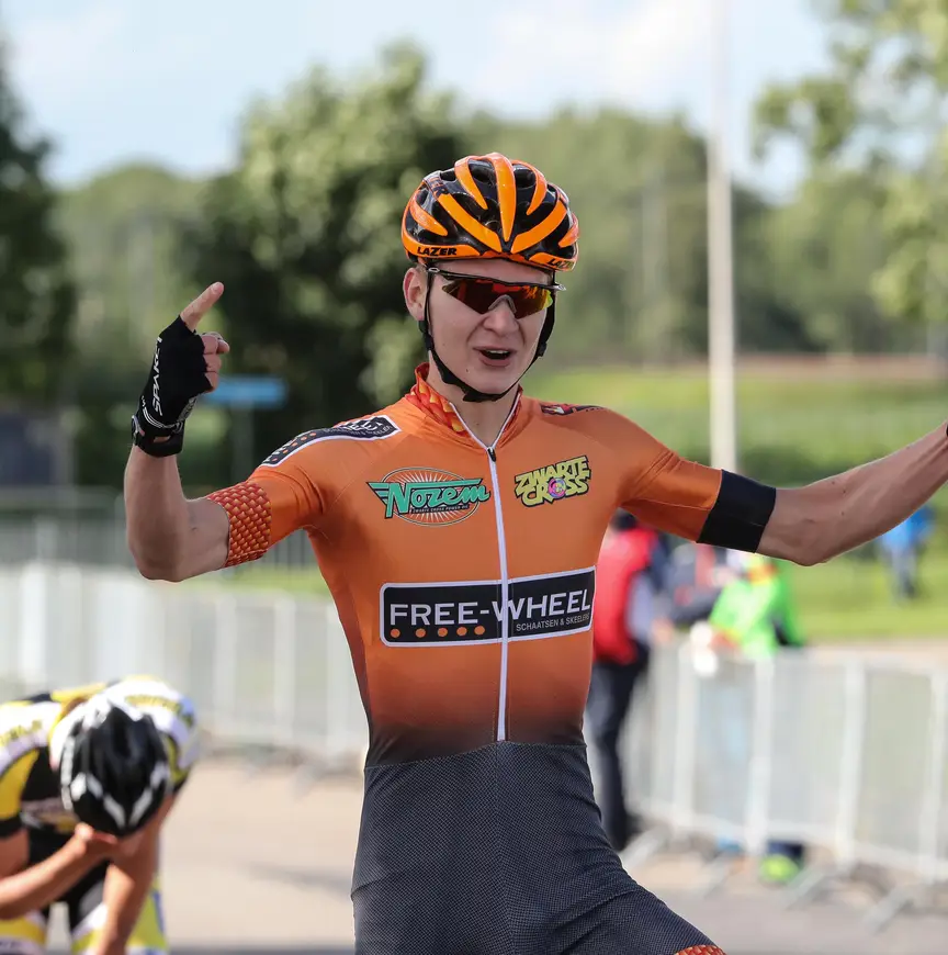 Waar hij de kracht vandaan haalt om nu zo zijn stempel op wedstrijden te drukken, dat weet de rijder van Free-Wheel eigenlijk wel. ’’Ik merk dat ik na die blessure nog elke week een stapje erbij kan doen, steeds sterker wordt. En ik ben natuurlijk nog gretig en fris.’’ Die gretigheid lijkt hij merken ook. ’’Vooraf aan de wedstrijd in Achterveld zei ik dat ik wilde winnen. Dat gevoel had ik vandaag ook. Het zou mooi zijn als ik hieraan een vervolg kan geven in Waarland en bij de finale in ’t Harde. Maar de Europacup in Oostende, dat is mijn grootste doel voor dit jaar.’’
