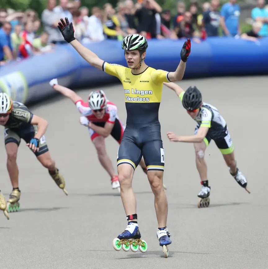 Donderdag had Huizinga de afvalkoers al op zijn naam geschreven en had hij een zilveren medaille op de 300 meter veroverd. Op de 1000 meter verwees hij Gerrie van Lingen naar het zilver en Louis Hollaar naar het brons.