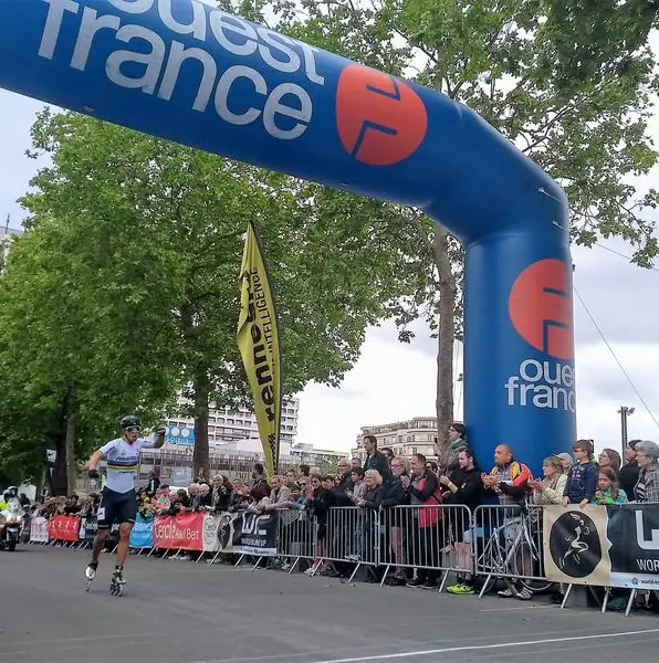Zes ronden voor het einde ging Rijhnen er alleen vandoor en kwam in Rennes als eerste over de finish. De Duitser boekte daarmee zijn tweede overwinning in de World Inline Cup. In de achtervolgende groep eindigde zijn teamgenoot Swings als tweede. De derde plaats moest worden bepaald door een fotofinish, die Beddiaf uitwees voor Fernandez.