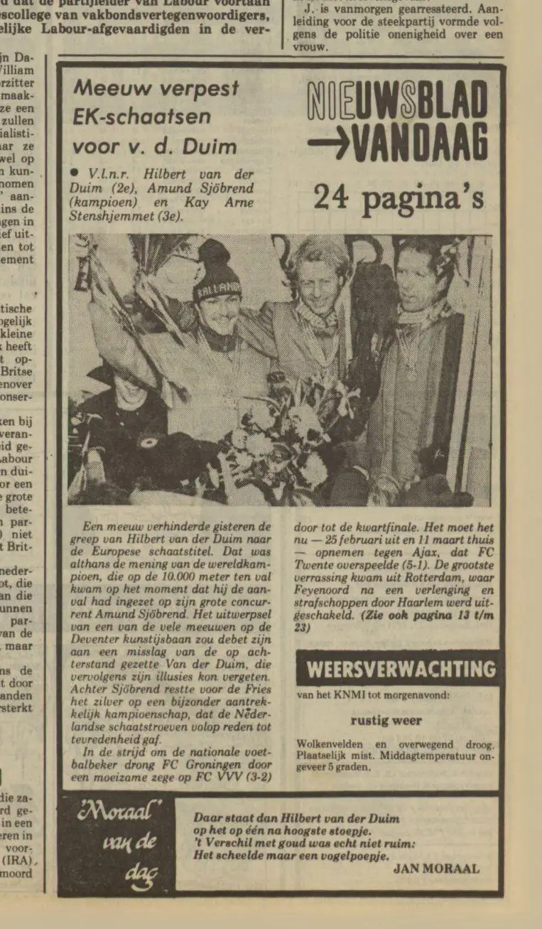 Het is een van de bekendste schaatsanekdotes aller tijden, die tijdens het televisiecommentaar nog altijd de revue passeert: het vogelpoepje dat Hilbert van der Duim, naar eigen zeggen, in 1981 de Europese titel kostte.