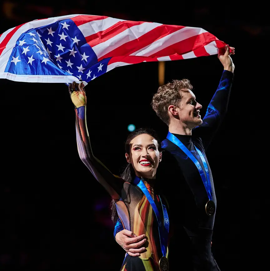De Amerikaanse Madison Chock en Evan Bates wisten te voorkomen dat alle wereldkampioenen uit Japan kwamen. De ijsdansers verbeterden op zowel de ritmische als de vrije dans hun persoonlijk record, ondanks een val op zaterdag. Op hun tiende WK was daar eindelijk het goud voor Chock en Bates (226,01). “Wij hebben dit doel zoveel jaren nagestreefd en tien seconden geleden is het gelukt, moeilijk om dat nu al in woorden te vatten. Ik ben zo blij”, vertelde Bates direct na afloop. De zilveren medaille was voor Charlene Guignard en Marco Fabri uit Italië (219,85), die uitzinnig waren na het horen van hun score. De Canadezen Piper Gilles en Paul Pirier (217,88) pakten het brons.