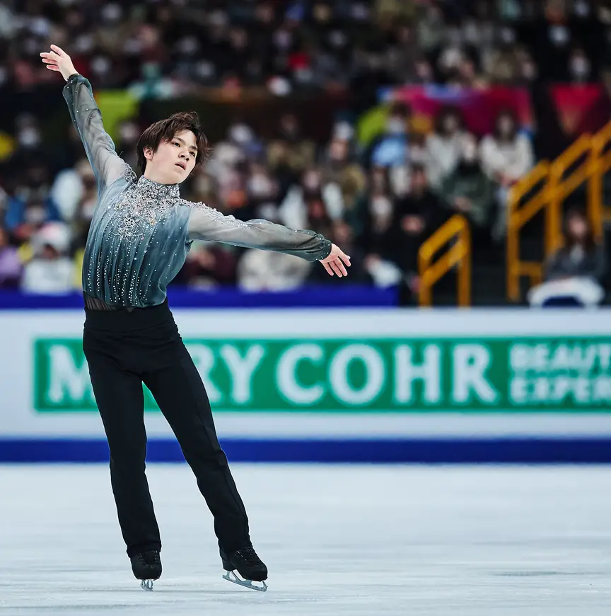 Vlak voor de kür van Uno had de Amerikaan Ilia Malinin een bijzondere prestatie neergezet. Hij was de eerste rijder ooit die op het WK een viervoudige axel uitvoerde. Vorig jaar verbaasde hij de kunstrijdwereld al door deze sprong uit te voeren op een training, zaterdag deed hij dat op het hoogste niveau. Daarmee was zijn technical element score ook de hoogste van het gehele veld. Omdat zijn program score achterbleef, belandde hij op de derde plek (288,44). De Koreaan Junhwan Cha steeg boven zichzelf uit, verpulverde zijn persoonlijk puntentotaal met veertien punten (296,03) en kreeg het zilver omgehangen. Daarmee is hij de eerste Koreaanse man die een medaille wint op het WK Kunstrijden.