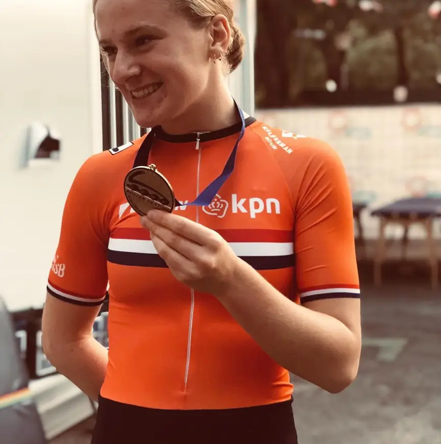 "Voor mij is dit heel bijzonder, ik heb nog nooit wat gehaald op Europees niveau", zegt Van Beijnum met een grote lach. "Ik kan het nog niet geloven. Vanuit mijn ooghoek leek het dat ik hem had op de streep dus ik was al aan het schreeuwen van geluk, maar toen hoorde ik via de speaker dat Sara derde was. Ik dacht: weer vierde? Maar op dat moment reed ik langs de tribune en zei mijn moeder: kijk op het scherm! Ik werd echt helemaal gek, zo blij!"
