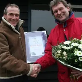 Evert van Benthem en voorzitter Klaas van der Linde van Ons Genoegen Toen bekend werd dat Van Benthem de afgelopen week in zijn geboortestreek zou zijn, besloot het bestuur dat het tijd was om het erelidmaatschap te onderstrepen. Afgelopen vrijdag kreeg de tegenwoordig in Canada wonende schaatslegende daarom een oorkonde. Ook werd hij buiten het clubgebouw op de gevoelige plaat vastgelegd. Dat portret krijgt binnenkort een plaatsje in de nieuwe eregalerij. "Evert was destijds ons eerste erelid. Later volgden nog twee mensen met buitengewone verdiensten voor onze ijsclub. Ook die zetten we binnenkort in het zonnetje", vertelt voorzitter Klaas van der Linde van Ons Genoegen. Evert van Benthem woonde vroeger aan de Leeuwte. Op de ijsbaan in Sint Jansklooster kwam hij vooral met zijn kinderen, zelf schaatste hij veel in De Wieden. "Dat is wat ik in Canada nog het meeste mis aan Nederland. Schaatsen langs de rietkragen is echt fantastisch. Als het ook maar even kon, stond ik op het ijs." In het clubgebouw van Ons Genoegen haalde Van Benthem vrijdag veel herinneringen op aan vroeger. Bij het bekijken van oude foto’s, kwamen de verhalen weer boven. Ook was hij onder de indruk van het materieel van Ons Genoegen. Het aanbod voor een ritje op de deze winter aangeschafte Quad van de club sloeg hij niet af. Ons Genoegen is een florerende ijsclub met een eigen vierhonderdmeterbaan in Sint Jansklooster. Ook organiseert de club toertochten. Afgelopen winter deden hieraan tienduizenden mensen mee. "Onze tientallen vrijwilligers maken dat mogelijk. Wij zijn allemaal besmet met het schaatsvirus. Als er ijs ligt, gaat het werk aan de kant en doen we alles voor de schaatssport", aldus Van der Linde.