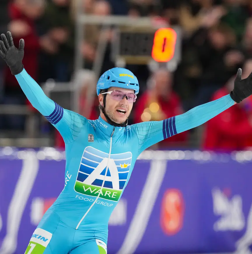 “Tsja, bizar dat het lukte”, ging De Boer in een adem verder. Op 500 meter trapte hij de ultieme versnelling aan en liet hij Robert Post (Jumbo-Visma) en Jeroen Janissen (Okay-Interfarms) kansloos: De magistrale zege een feit. “Ik heb zo vaak waardeloze finales gereden, dat vond Jillert tenminste. In die positie verkrampte ik zo vaak, maakte schoonheidsfoutjes en wist niet wat te doen. En nu? Alles ging goed”, sprak hij met ongeloof op zijn gezicht. Het werd binnen de muren van Royal A-ware zelfs een 'running gag’: “Jillert zei dan tijdens de voorbespreking: ‘Tjerk, we gaan helemaal voor jou.’ Maar toch was er vandaag het vertrouwen toen ik als enige van de groep in de kopgroep zat, ze lieten ons rijden. Daar sprak wel vertrouwen uit.”