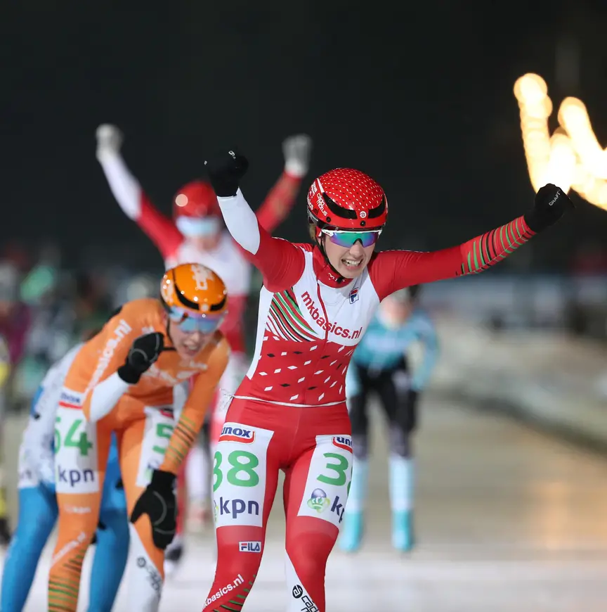 Het oranje kon Van der Stelt al niet meer ontgaan, en ook de ploegenklassement werd gewonnen door team mkbasics.nl. "Het is jammer dat Manon (Kamminga) er niet bij kon zijn om het ook met haar af te sluiten. Maar we hebben mooie dagen op natuurijs gehad met haar." Na wedstrijden in de bittere kou in Zweden, drie dagen op Nederlands natuurijs en een laatste Cupwedstrijd is het nu tijd voor rust. "Ja, ik heb mijn dagje sauna al geboekt op maandag. Even chillen, ha."